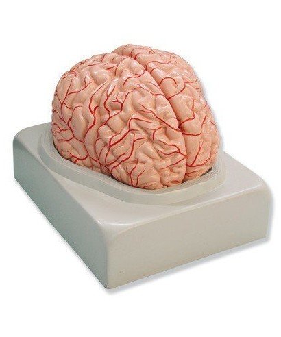 This life-size anatomical model of the human brain is an essential educational tool for students and professionals in the medical and scientific fields. Made from durable PVC, it ensures a long lifespan and resistance to frequent use in academic and clinical settings. The model is detachable and divided into parts representing the frontal, parietal, temporal, and occipital lobes, as well as half of the brainstem and the cerebellum. This feature allows for a detailed study of each section of the brain, facilitating an understanding of its specific structure and functions.
