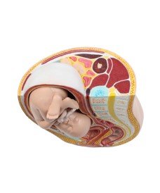The anatomical cross-sectional design enables observation of internal organs and cavities, as well as the engagement and positioning of the foetus within the birth canal under normal physiological conditions. This model is particularly suitable for explaining the mechanisms of labour, foetal orientation and anatomical changes occurring during advanced pregnancy.