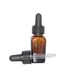 Amber square glass bottle with 18mm black screw dropper cap