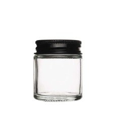 Wide-mouth screw-cap glass jar for cosmetics, pharma, lab and food. Available in clear, green and amber (amber protects from light). Made of soda-lime glass with good chemical resistance to water, salts, acids and organic solvents. Not suitable for hydrofluoric acid or strong bases at high temperatures. Caps in aluminium or bakelite in black, gold or silver.
