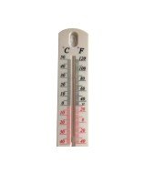 Indoor or outdoor thermometer with digital maximum and minimum temperature measurement. Features a display with clear, easy-to-read numerals in a plastic casing and ornamented with a canopy
