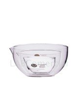 Este recipiente presenta una estructura semiesférica y una base plana que proporciona estabilidad durante su uso. El diseño incluye un pico vertedor, lo que facilita el trasvase seguro y preciso de líquidos.