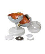 Ojo. Fabricado en PVC con base Muestra: capas esclero-corneal (córnea y esclerótica), uveal (iris y coroides) y retiniana, cristalino, cámaras anterior y posterior del ojo, nervio óptico y músculos oculares Compuesto de 6 partes Dimensiones 15x15x25cm Aumento 6x