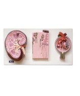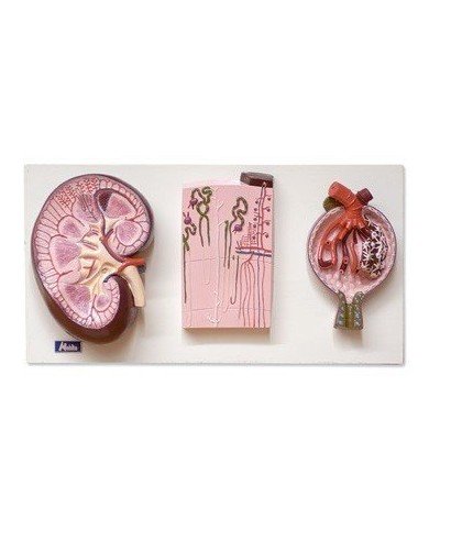 Riñón, corpúsculo renal y nefrona. Fabricado en PVC con base