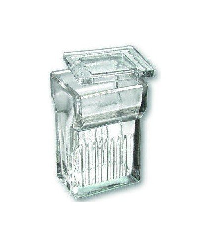 Boîte à coloration en verre modèle Hellendahl avec couvercle pour 8-16 lames porte-objets.